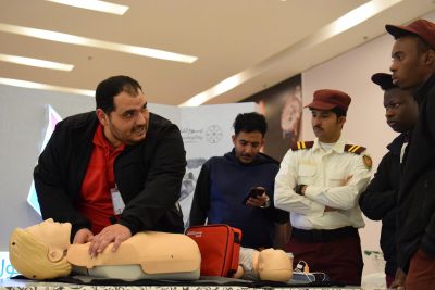 تنفيذ يوم تدريبي لهيئة الهلال الأحمر السعودي في مول الباحة ضمن مشروع “معاذ” للسلامة الإسعافية