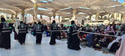 هكذا هم فتيان وفتيات الكشافة في المسجد النبوي، شعلة من العطاء والتفاني، يسيرون بين المصلين كأنهم ملائكة رحمة، يزرعون البهجة والراحة في قلوب زوار مسجد المصطفى صل الله عليه وسلم.