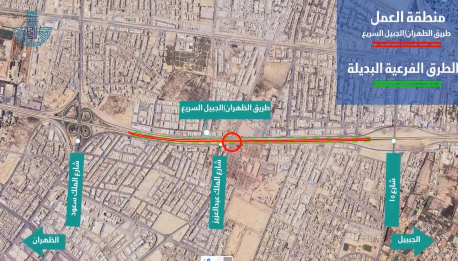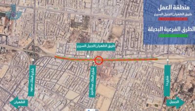 وأوضحت الأمانة، بأن بالأعمال ستكون على النحو التالي: سيتم إغلاق طريق الظهران – الجبيل الرئيسي ابتداءً من تقاطع جسر طريق الملك سعود بن عبد العزيز، مع تحويل حركة المركبات إلى طريق الخدمة والإبقاء على أربع حارات لضمان انسيابية التنقل.