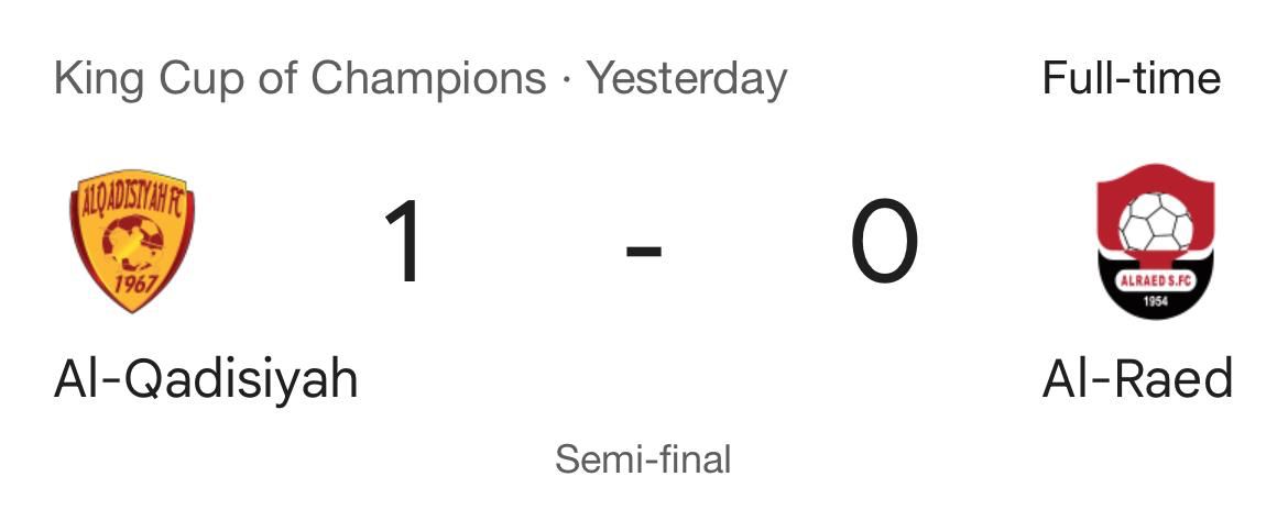 حقق نادي القادسية إنجازًا تاريخياً بوصوله إلى نهائي كأس خادم الحرمين الشريفين “أغلى الكؤوس” لأول مرة في تاريخه، بعد انتصاره الصعب والمثير على نظيره نادي الرائد بهدف قاتل بالوقت القاتل (بدل الضائع) من عمر المباراة، في المواجهة التي جمعت بينهما مساء أمس الأربعاء على أرضية ملعب الأمير محمد بن فهد في الدمام.