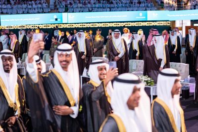 وفي كلمة الخريجين التي ألقاها فهد العمري وريماس السلولي، أكدوا جميعاً أنهم سيمضون قدماً لخدمة الوطن في ظل رؤية طموحة، يشارك فيها الشباب بأيديهم في بناء مستقبل واعد، بعد أن أعطيت الأولوية للمبدعين والموهوبين، ودعمت ثقافة الابتكار، ووفرت فرصاً مميزة للنمو أمام كل خريج وخريجة.