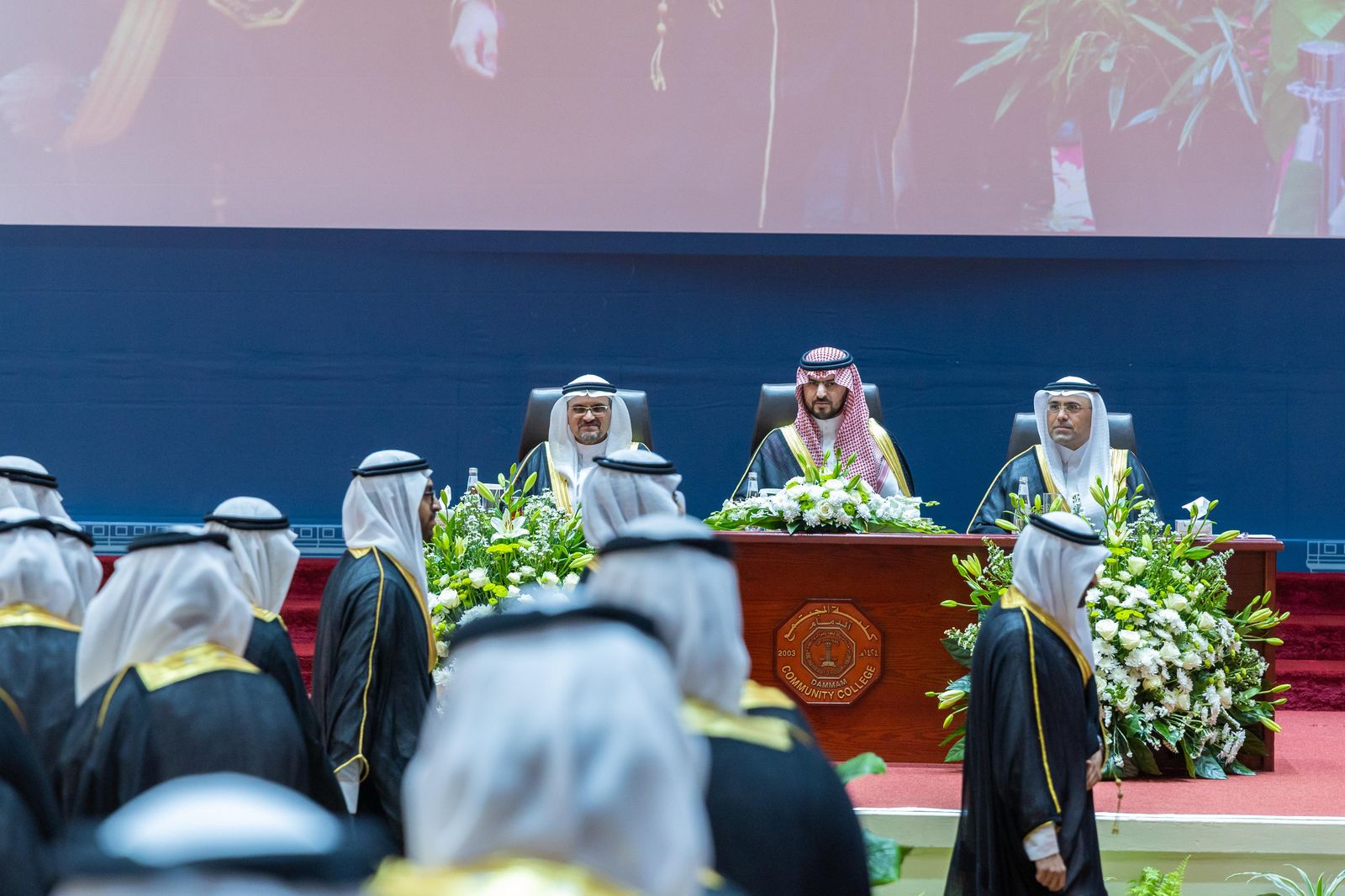 كما قدم الدكتور باحيدرة، باسمه ونيابة عن جميع منسوبي كلية المجتمع، خالص الشكر والتقدير لصاحب السمو الملكي نائب أمير المنطقة الشرقية على رعايته وتشريفه الحفل، مؤكدًا أن هذه الرعاية تمثل دعمًا وتحفيزًا كبيرًا للخريجين وهم يستعدون للانطلاق نحو مستقبلهم المهني والعلمي.