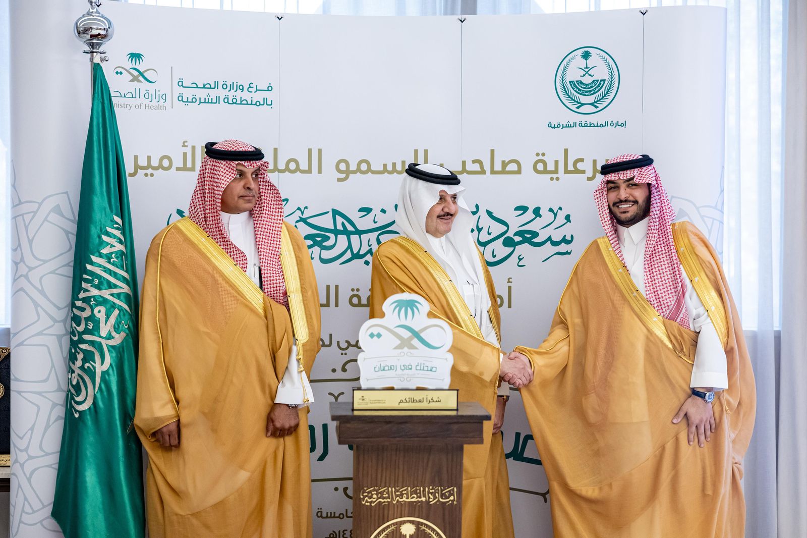 كرّم صاحب السمو الملكي الأمير سعود بن نايف بن عبدالعزيز، أمير المنطقة الشرقية، بديوان الإمارة اليوم الأربعاء، الجهات المشاركة في حملة “صحتك في رمضان” في نسختها الخامسة، التي نظمها فرع وزارة الصحة بالمنطقة الشرقية خلال شهر رمضان الماضي، بمشاركة عدد من الجهات من القطاعين الحكومي والخاص.