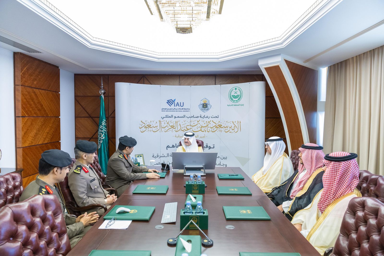 شهد صاحب السمو الملكي الأمير سعود بن نايف بن عبدالعزيز، أمير المنطقة الشرقية، في مكتب سموه بديوان الإمارة اليوم الأحد، توقيع مذكرة تفاهم بين مديرية شرطة المنطقة الشرقية وجامعة الإمام عبدالرحمن بن فيصل.