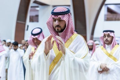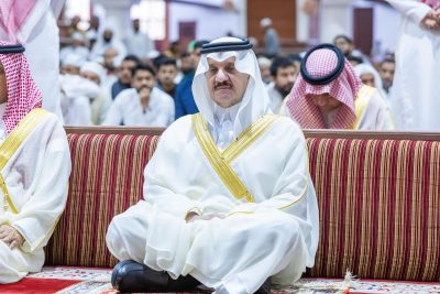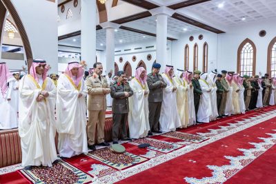 أدى صاحب السمو الملكي الأمير سعود بن نايف بن عبدالعزيز، أمير المنطقة الشرقية، وصاحب السمو الملكي الأمير سعود بن بندر بن عبدالعزيز، نائب أمير المنطقة الشرقية، صباح اليوم الجمعة، صلاة عيد الأضحى المبارك مع جموع المصلين، وذلك في جامع خادم الحرمين الشريفين بمدينة الدمام.