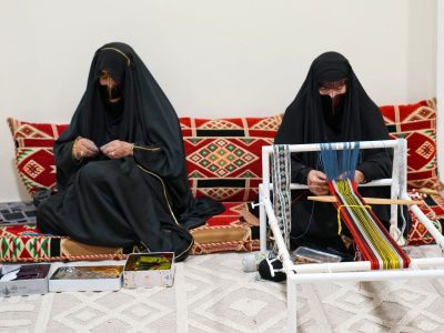 كما تشتمل ورشة “القرض وتركيب التلي” التي بدأت للمشاركات تعلم الحرف التلي بالطرق التقليدية باستخدام الرجال والنساء التقليدية، وورشة “البراقع” الهادفة إلى تطوير المهارات الفنية لتعلم التراثية باستخدام هذه المواد التقليدية.