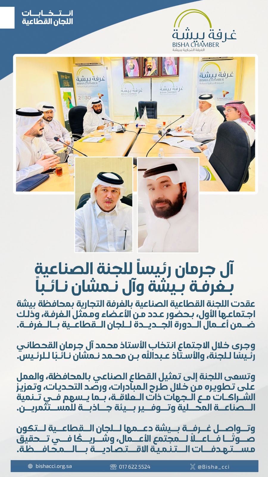 وتواصل غرفة بيشة دعمها للجان القطاعية لتكون صوتًا فاعلًا لمجتمع الأعمال، وشريكًا في تحقيق مستهدفات التنمية الاقتصادية بالمحافظة.