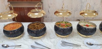 وفي الختام تناول الجميع وجبة الافطار في جو من المحادثات الودية .