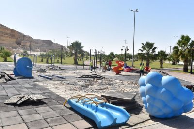 وتضمنت الأعمال تجهيز أرضيات مطاطية بمساحة إجمالية بلغت 2896 مترًا مربعًا في نطاق مواقع الألعاب، لضمان حماية الأطفال أثناء اللعب، بالإضافة إلى استبدال الألعاب القديمة أو غير الآمنة بأخرى حديثة، ما يعزز جانب السلامة في الحدائق العامة.