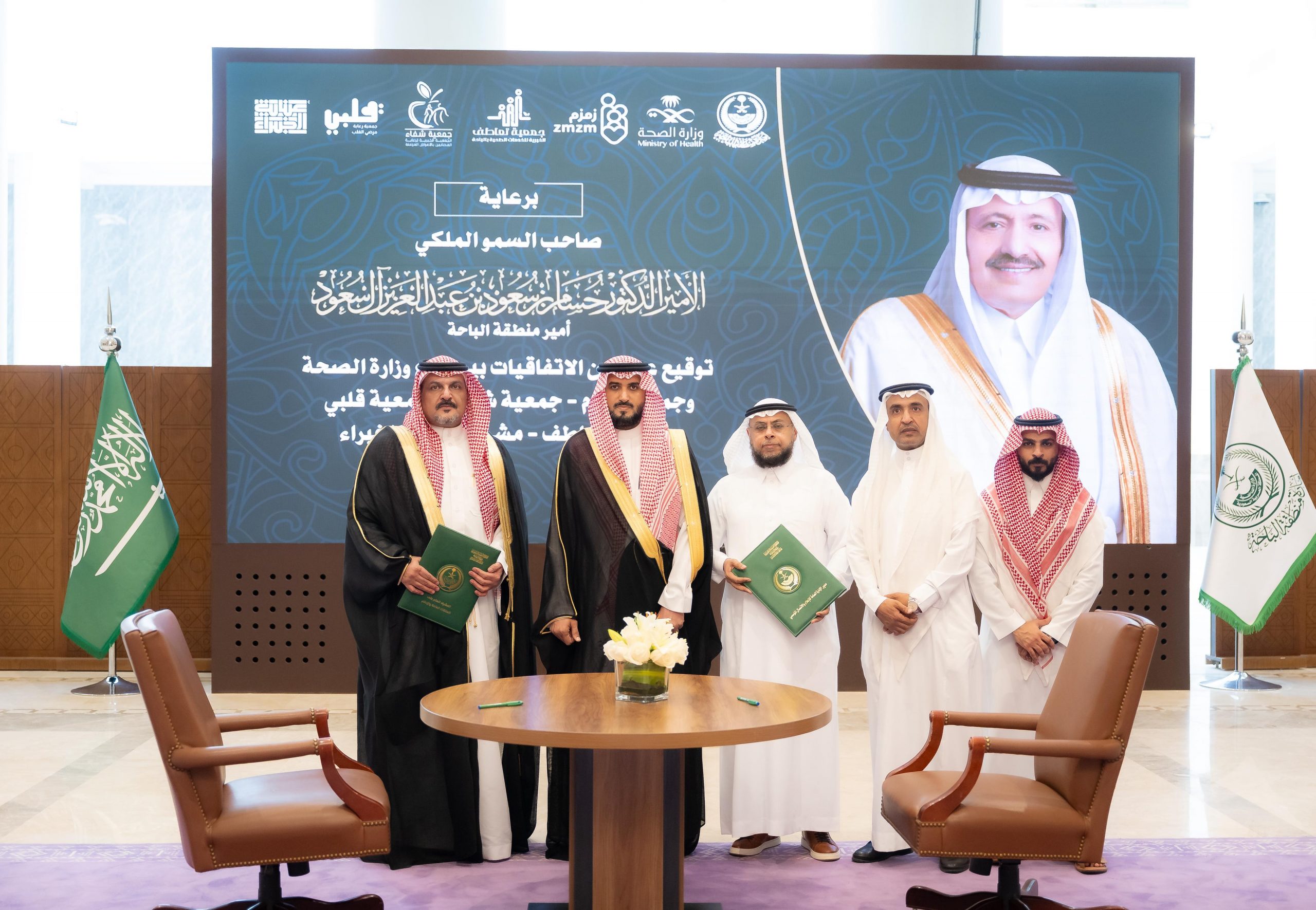 امتدادًا لحرص صاحب السمو الملكي الأمير الدكتور حسام بن سعود بن عبدالعزيز أمير منطقة الباحة، على دعم القطاع الصحي وتعزيز الشراكات التنموية المستدامة، شهد سعادة وكيل إمارة المنطقة الدكتور عبدالمنعم بن ياسين الشهري، وذلك بديوان الإمارة اليوم، توقيع عدد من الاتفاقيات الصحية ومذكرة تفاهم بين مركز الخبراء الطبي وعدد من الجمعيات الصحية غير الربحية ، واتفاقية أخرى بين جمعية تعاطف الخيرية وجمعية رعاية مرضى القلب .