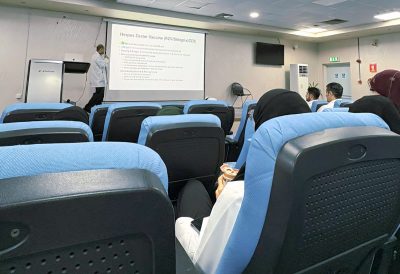 في إطار الجهود المستمرة لتعزيز مفاهيم الصحة الوقائية، نظم قسم الطب الوقائي بالتعاون مع قسم الباطنية في مستشفى القطيف المركزي، أحد مكونات تجمع الشرقية الصحي، سلسلة محاضرات توعوية متخصصة، استهدفت 40 طبيبا من أطباء الباطنية، ركزت على التعريف بمرض الحزام الناري وأهمية اللقاح الوقائي، إلى جانب توضيح آلية تحويل المرضى لتلقي التطعيم في العيادات الخارجية.