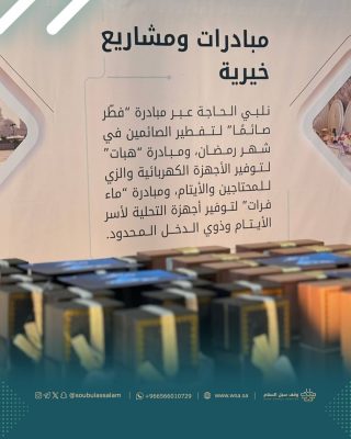 في ليلة بهيجة ومشهد احتفائي فخم بمدينة المصطفى ﷺ، اختتم وقف سبل السلام برامجه ومشاريعه لعام 1446–1447هـ، وذلك في حفل مميز أقيم تحت شعار “فيضٌ من النعم”، وذلك يوم الثلاثاء 13 محرّم 1447هـ الموافق 8 يوليو 2025 وبحضور عدد من القيادات النسائية والمهتمين بالعمل القرآني والخيري.