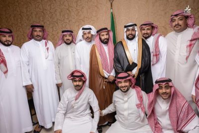 حضور مشرف من أعمام العريس وأولادهم وحضور مشرف من خوال العريس وأولادهم .