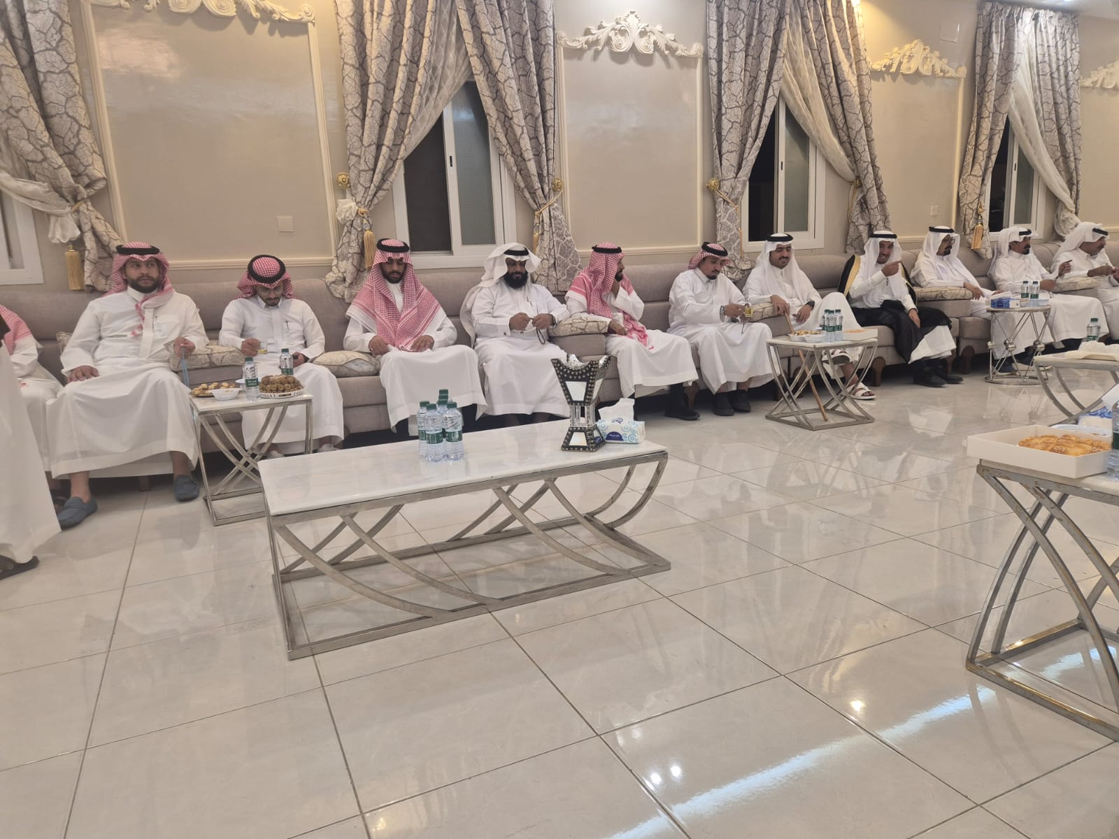 وقدم الجميع التهاني والتبريكات مقرونة بالدعاء للعريسان بالتوفيق في حياتهما الزوجية.