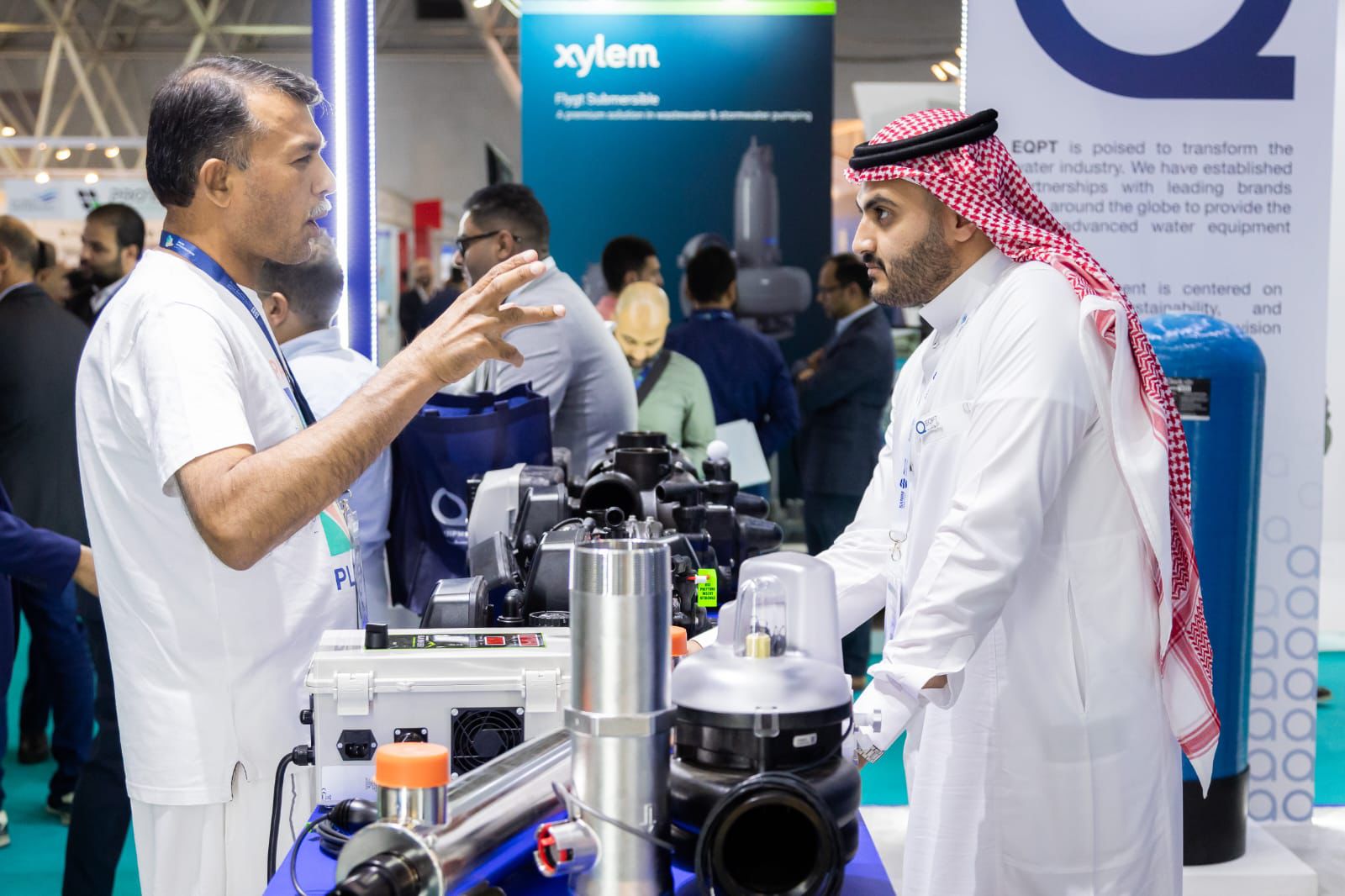 سيشهد المعرض مزيجاً من العارضين الذين شاركوا في الدورات السابقة للحدث وعارضين يشاركون للمرة الأولى والذين سيكشفون عن أنظمة متقدمة لمعالجة المياه، وأدوات ذكية للمراقبة، وتقنيات لاستعادة الموارد. ومن بين أبرز العارضين شركة Wilo، الشركة العالمية الرائدة في أنظمة المضخات الذكية والموفرة الطاقة، وشركة Xylem، وهي مدرجة ضمن قائمة فورتشن 500 و متخصصة في تقنيات المياه وحلول البنية التحتية والمعالجة، وشركة ABB، الشركة السويسرية-السويدية العملاقة في مجال التكنولوجيا التي تقود مسيرة الكهربة والأتمتة لتحقيق عمليات مائية مستدامة، وشركة Veolia Technologies، المزود العالمي للحلول المتكاملة في المياه والنفايات والطاقة، وشركة LG Chem، أكبر شركة كيميائية في كوريا الجنوبية مبتكرة في حلول المياه والتقنيات المستدامة، وشركة Medisun، شركة ناشئة من سنغافورة رائدة في تحلية المياه بتقنية التحليل الكهربائي العكسي (RED) والطاقة الزرقاء، وشركة REDA Water، الشركة السعودية المتخصصة في معالجة المياه، والشركة الوطنية لأعمال المياه (NWWC)، التي تقدم حلول المضخات والأنظمة الكهروميكانيكية والبنية التحتية، وشركة Toray، الشركة اليابانية الرائدة في مجال المواد والتقنيات المتقدمة للأغشية والمياه، وشركة Ebara Pumps، الشركة اليابانية العريقة التي تتجاوز خبرتها مئة عام في تصنيع المضخات الطاردة المركزية وأنظمة المياه.