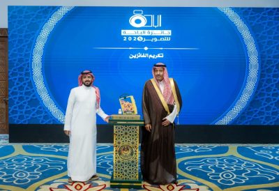 وفي بداية الحفل شاهد سموه عدداً من اللوحات والصور للمشاركين في الجائزة، من خلال المعرض الذي نظمته جمعية الثقافة والفنون بالمنطقة، واستمع إلى شرح من المصورين عن تلك الصور، كما شاهد عرضًا مرئيًا عن الجائزة وآلياتها ومحاورها التي تضمنت أربعة مجالات رئيسية، شملت الطبيعة، السياحة، التراث، والثقافة المحلية، شارك فيها 216 مصورًا من المحترفين والهواة، بشراكة مجتمعية مع رجل الأعمال مصلح بن صالح السنّي الزهراني الذي قدم دعماً للإبداع والمبدعين بجوائز تجاوزت 50,000 ألف ريال، فيما تولّى تقييم المشاركات لجنة تحكيم متخصصة في التصوير والأفلام والإنتاج الفني.
