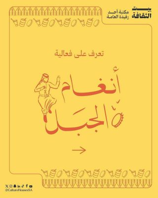 تنطلق الخميس القادم في بيت الثقافة بمحافظة أحد رفيدة فعالية ” أنغام الجبل”، وسط حضور متوقع من المهتمين بالتراث والفنون الشعبية، وذلك خلال الفترة من 27 حتى 29 أغسطس.