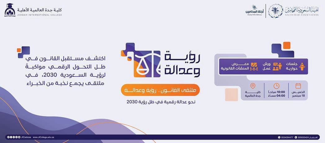 ويأتي هذا الملتقى ليعكس التزام كلية جدة العالمية بتعزيز الحوار القانوني وإيجاد منصات تسهم في مواكبة المتغيرات التشريعية والتقنية، بما يتماشى مع مستهدفات رؤية المملكة 2030.