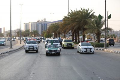 واصطف الأهالي والمقيمون على جانبي الطريق رافعين الأعلام الوطنية ومعبّرين عن مشاعر الفرح والاعتزاز بهذه المناسبة الغالية، ومؤكدين ولاءهم ووفاءهم للوطن وقيادته الرشيدة.