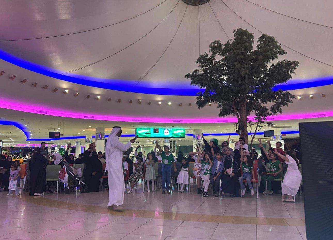 الاحتفال باليوم الوطني في مجمع الشاطىء مول بمنطقة الشرقيه-الدمام حيث بدأ الحفل بالسلام الملكي ثم تلاوة ايات من القران الكريم.