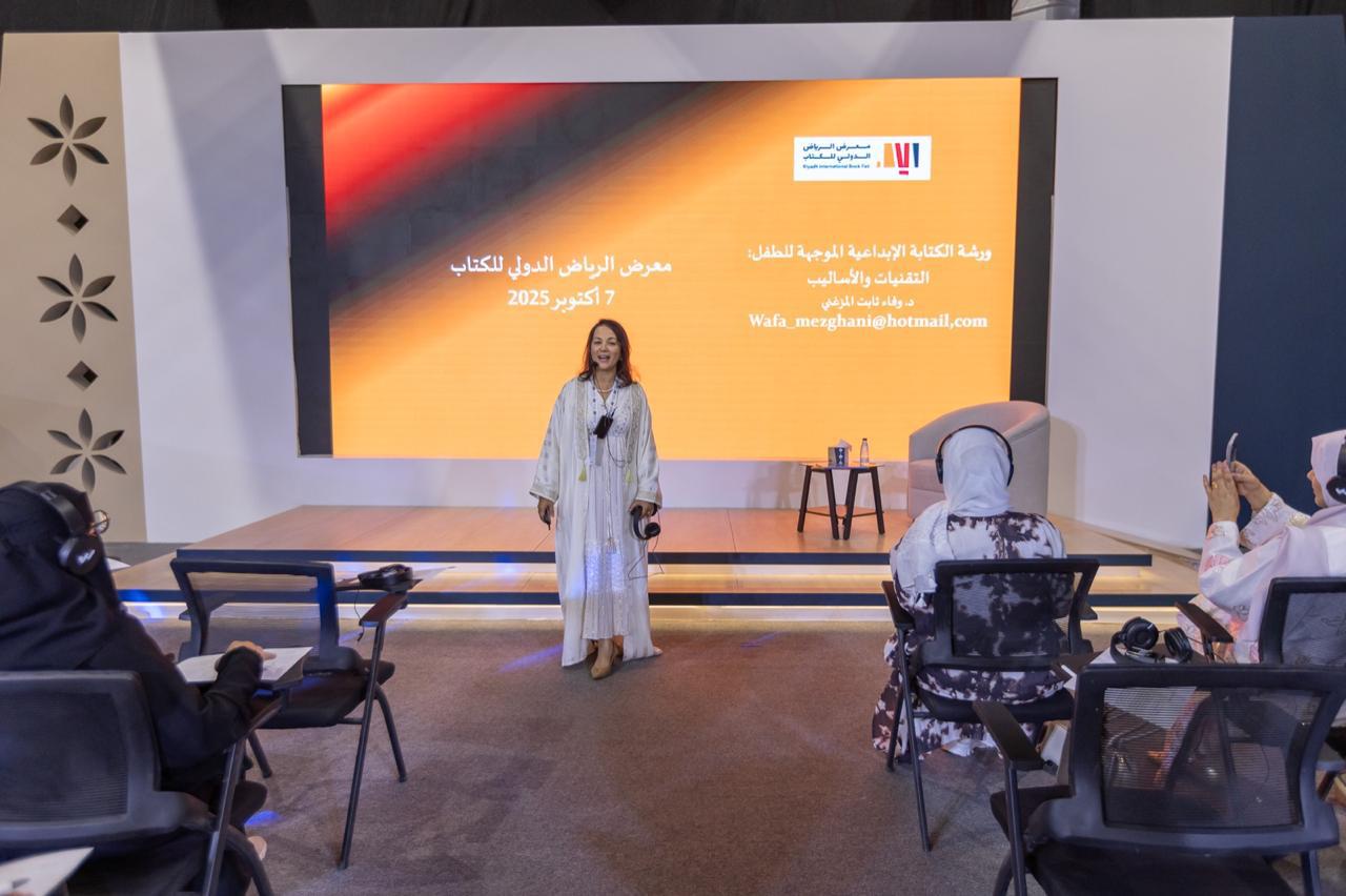 أقام معرض الرياض الدولي للكتاب 2025، الذي تنظمه هيئة الأدب والنشر والترجمة، ورشة عملٍ بعنوان “الكتابة الإبداعية الموجّهة للطفل: التقنيات والأساليب”، قدّمتها الأكاديمية والكاتبة المتخصصة في أدب الطفل الدكتورة وفاء ثابت المزغني.