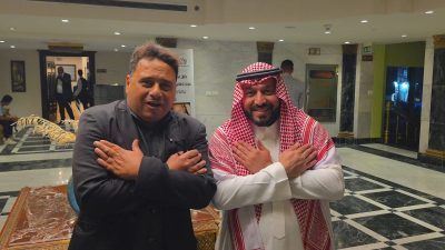و من نجوم العالم العربي ( سعد راشد الكاتب البحريني والاعلامي السعودي مشعل العتر وناصر بن عبد العزيز الجريد مسؤل العماله في السعوديه والدول العربية