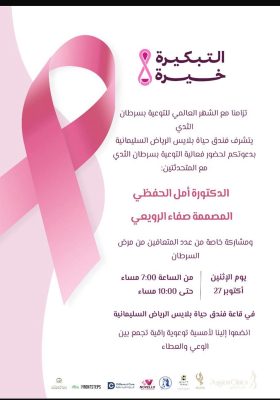 انطلقت امس مبادرة الوشاح الوردى السنويه فى فندق الحياة بالاس وهذى السنه الرابعه على التوالى