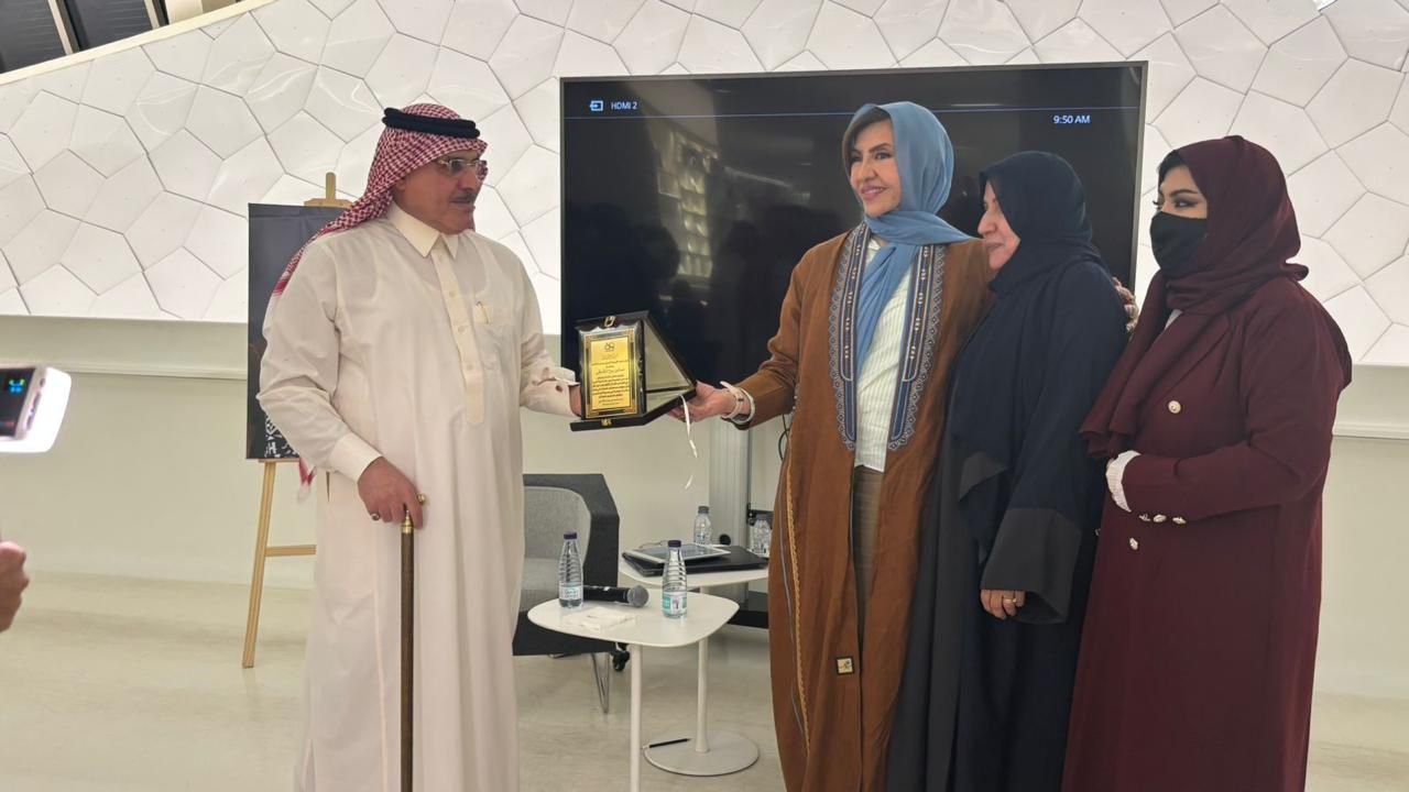 وفي ختام الأمسية، قام الناقد والكاتب المعروف الأستاذ محمد رضا نصر الله بتكريم الروائية أميمة الخميس والمحاورة أسماء بوخمسين، بحضور مؤسِّسة صالون بوح الثقافي صباح عبدالله، تقديراً لمشاركتهما وإسهامهما في إثراء اللقاء.
