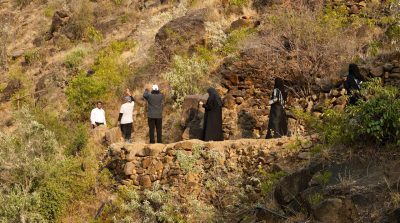 حيث بدأت الرحلة بزيارة محمية ريدة الطبيعية وصولا إلى مزرعة ونفق الكامدي ، والذي يعتبر احد اهم مصائد المياه التي صنعها الانسان بطول يصل إلى اكثر من ٢٠ م وذلك للوصول إلى مصادر المياه داخل الجبل ومن ثم تجميعها في برك خاصة يتم بعدها توزيعها على المدرجات الزراعية للبن والموز الجبلي وبعض أنواع الحمضيات .
