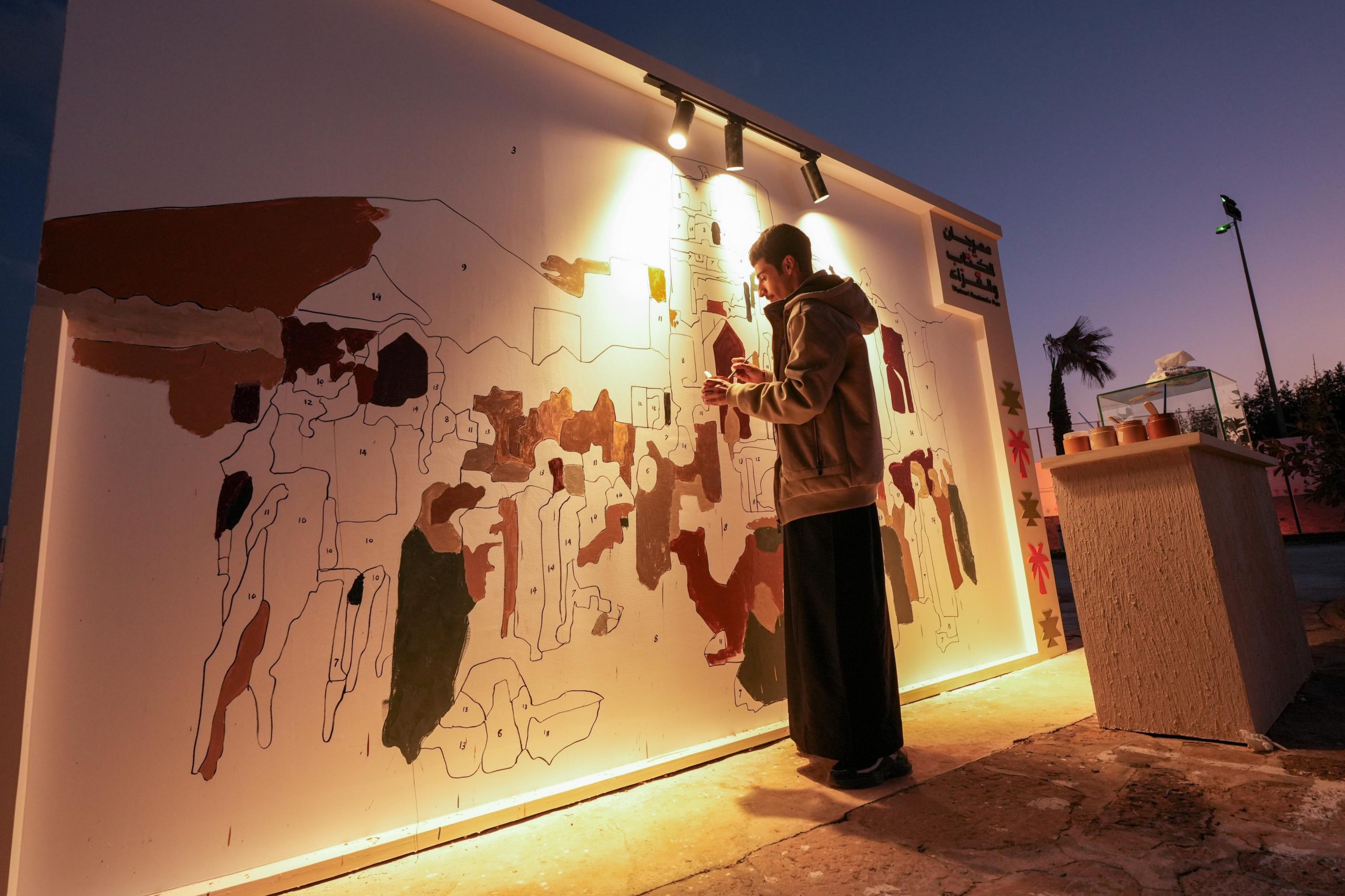 وقدّم الفنان علي النفيعي، أحد أبرز الأسماء في فن الجداريات المعاصرة، تصميم الرسومات بأسلوب يمزج الحس الشعبي بالخيال البصري، ويقرّب الزائر من جماليات المكان عبر مشاركة تفاعلية مباشرة.