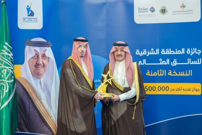 وفي ختام الحفل، كرّم سمو أمير المنطقة الشرقية الفائزين والجهات الحكومية والخاصة المتميزة، تقديرًا لانجازاتهم ودورهم البارز في تعزيز ثقافة السلامة المرورية.