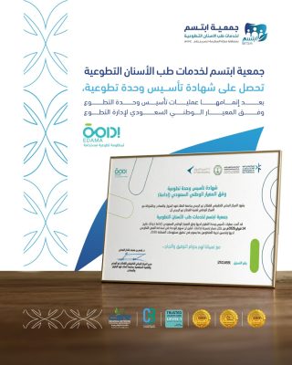 أسست جمعية ابتسم لخدمات طب الأسنان التطوعية بمنطقة مكة وحدة التطوع وفقًا للمعيار الوطني السعودي للتطوع “إدامة” وذلك في خطوة نوعية تسهم في تعزيز جودة الخدمات المقدمة لمستفيديها من الأسر الفقيرة والمحتاجة، من خلال رفع كفاءة العمل التطوعي وتوسيع أثره المجتمعي في المنطقة.