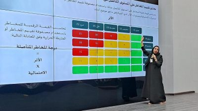 كما استعرضت مدير إدارة المخاطر بوزارة البلديات والإسكان مواهب كاتب محور إدارة المخاطر متناولا منهجيات تحديد وتحليل وتقييم المخاطر وآليات معالجتها وقابلية تقبل المخاطر وتحديد المخاطر الرئيسية ومؤشراتها إضافة إلى آليات الإبلاغ ومراقبة المخاطر والمراجعة ورفع التقارير