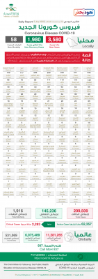 وأكدت “الصحة” تسجيل 58 حالة وفاة جديدة، ليرتفع الإجمالي إلى 1916 حالة وفاة.