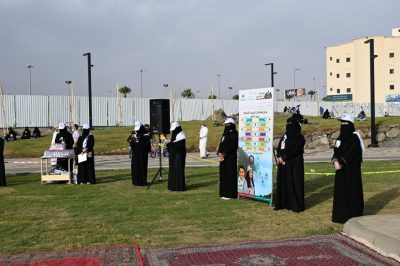حيث بدأ الحفل بالسلام الملكي ثم القرآن الكريم بعد ذلك نبذة تعريفية عن المخيم الكشفي للأستاذ محمد الهزازي والأستاذة شريفة الألمعي رؤساء النشاط الكشفي(بنين-بنات)