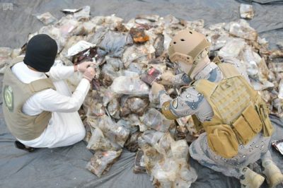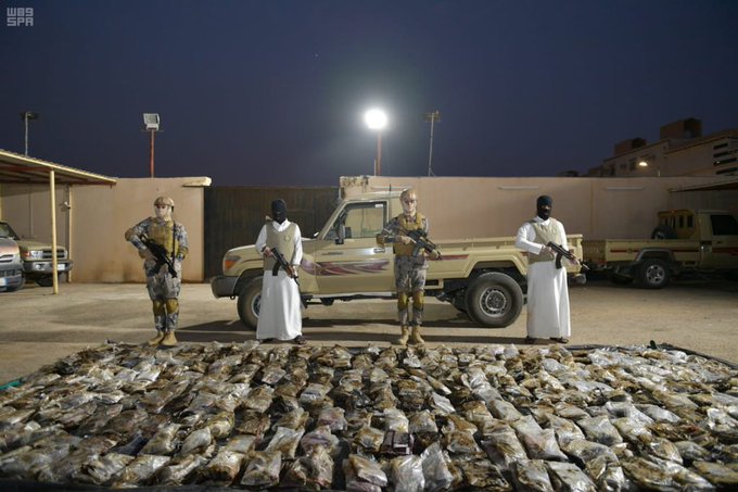صرّح المتحدث الرسمي لحرس الحدود، المقدم مسفر بن غنّام القريني، بأنه وفي إطار المتابعة الأمنية المستمرة للنشاطات الإجرامية التي تستهدف المملكة بالمخدرات، فقد أسفرت تحريات رجال حرس الحدود عن كشف مخطط لتهريب كمية كبيرة من الحشيش المخدر إلى المملكة عبر الحدود الجنوبية ، حيث جرى على الفور اتخاذ الإجراءات اللازمة وفق خطة أمنية مشتركة مع المديرية العامة لمكافحة المخدرات، وبتوفيق من الله، جرى إحباط هذا المخطط الإجرامي وضبط المواد المخدرة التي بلغت (948) كيلو جراماً من مادة الحشيش المخدر، والقبض على مستقبلها، وهو مواطن من أرباب السوابق في منطقة الرياض.