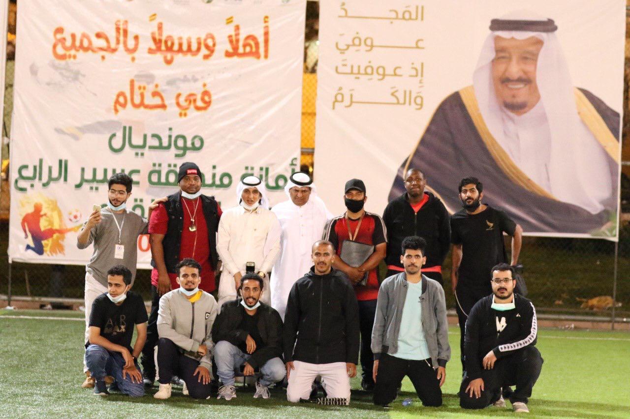 وفي ختام البطولة قدّم رياضيو منطقة عسير تهنئتهم لسمو أمير المنطقة صاحب السمو الملكي الأمير تركي بن طلال بن عبدالعزيز وسعادة أمين منطقة عسير الدكتور وليد الحميدي ومدير عام السياحة والفعاليات بأمانة عسير المهندس علي الحيد ورئيس اللجنة المنظمة لمونديال عسير الرابع الأستاذ محمد موسى على نجاح هذا الكرنفال الرياضي الكبير الذي أثبت بأن منطقة عسير رائدة في التميز والتألق برغم كافة الصعوبات والمعوقات والظروف الإستثنائية التي تواجه العالم أجمع في جائحة كورونا ، وفي ظل مشاركة 32 فريقاً من منطقتي عسير وجازان يمثّلهم 700 شاب ، وحضور جماهيري إجمالي تجاوز الـ 50 ألف متفرج ، وتم البدء فيه بواقع 31 مباراة والإنتهاء منه ولله الحمد بكل صحة وسلامة ودون تسجيل أي إصابات خلال مجريات البطولة في تحدٍ كبير استطاعت اللجنة المنظمة كسب رهانه بثقة سمو أمير المنطقة وسعادة أمين المنطقة التي وضعت برامج الشباب وهواياتهم أولوية بارزة وهيّأت لهم سُبل ممارستها في بيئة صحية جاذبة ومنظّمة واحترافية .
