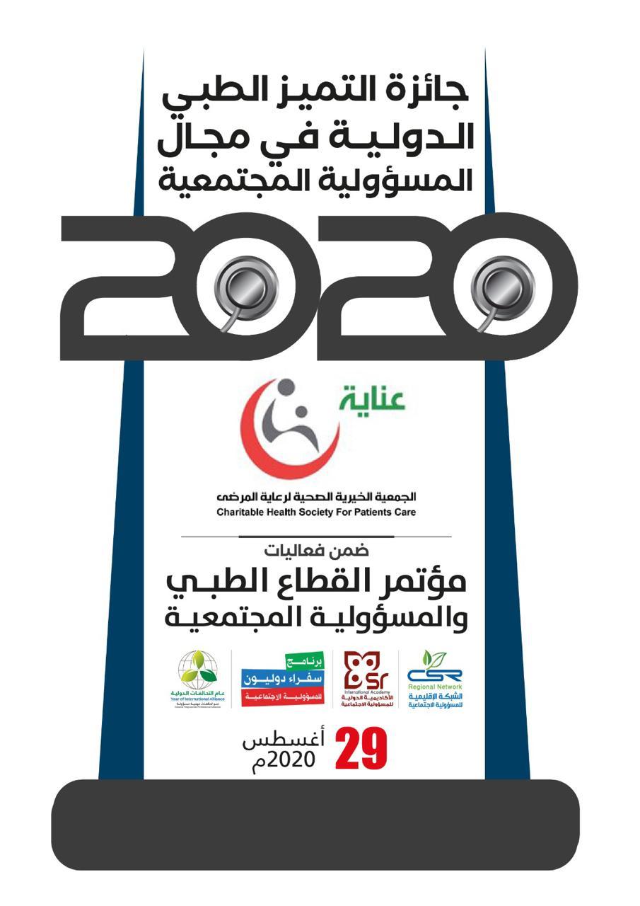 حصلت جمعية عناية الصحية على جائزة التميز الطبي الدولية لجهودها المتميزة في مكافحة جائحة كورونا جاء ذلك في مؤتمر القطاع الطبي والمسؤولية الاجتماعية الذي نظمته الشبكة الإقليمية في دولة البحرين بحضور ممثل منظمة الصحة العالمية وبعض الشخصيات الكبيرة بدولة البحرين ومشاركة جهات عدة من مختلف الدول عبر تطبيق برنامج زوم .