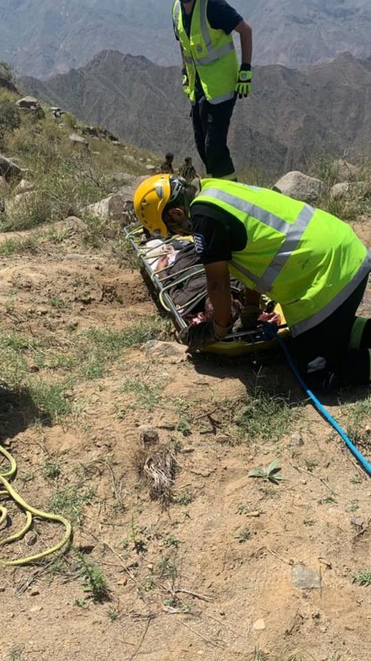 مدني أبها يتمكن من إنقاذ شخصين في منطقة جبلية وعرة في جبال الشرف