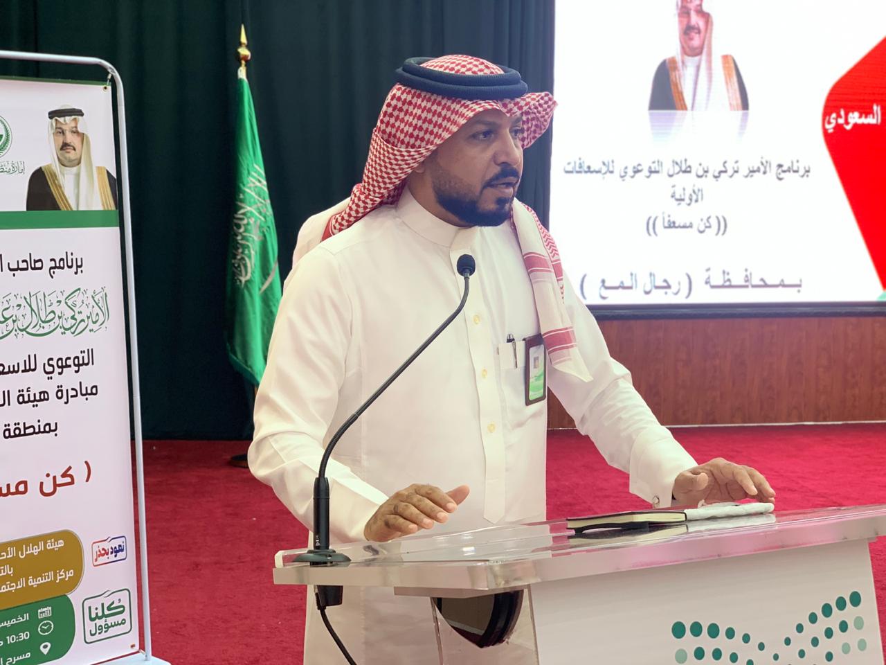 من جانبه ، أوضح مدير هيئة الهلال الأحمر برجال ألمع الأستاذ إبراهيم آل عامر أن البرنامج يعد توعويًا يقدمه مجموعة من المدربين المؤهلين من منسوبي الهيئة في جميع محافظات المنطقة عن الإسعافات الأولية وكيفية التعامل مع الحالات الإسعافية الطارئة ، تحقيقًا لرؤية 2030 من خلال إشراك المواطنين والمواطنات في تقديم الخدمة الإسعافية قبل وصول الفرقة المختصة بالإضافة لتأهيل مسعف في كل بيت وتحفيز المجتمع للحصول على دورات متقدمة في المجال الإسعافي، مقدمًا شكره لمدربين هذا اللقاء المسعف عبدالله فلقي ومحمد الزين وللشريك الفاعل إدارة التعليم ولجميع الحاضرين هذا البرنامج التوعوي، راجيًا أن تحقق أهدافه وتصل الرسالة لكافة فئات المجتمع.