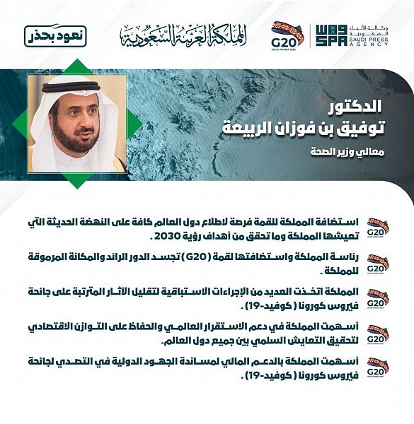 أخبار محلية > وزير الصحة: استضافة المملكة لقمة مجموعة العشرين (G20) تجسيد للدور الرائد الذي تتميز به
