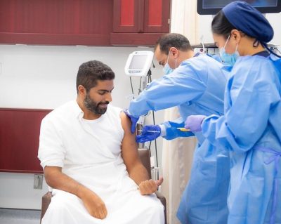 تلقى وزير الداخلية الأمير عبد العزيز بن سعود بن نايف، ووزير الثقافة الأمير بدر بن عبد الله بن فرحان، ورئيس هيئة الترفيه تركي آل الشيخ الجرعة الأولى من اللقاح.