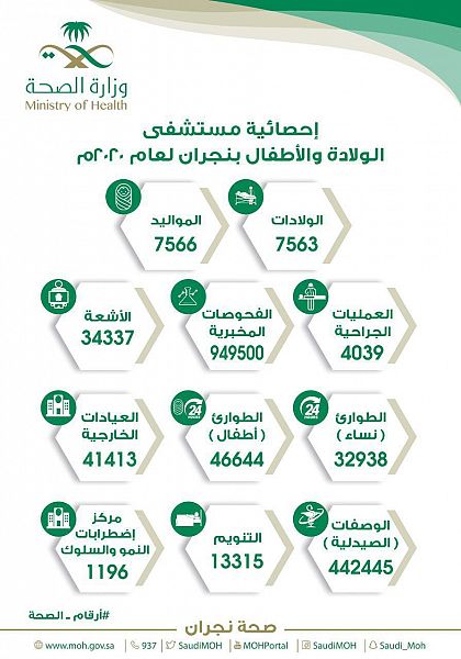 أكثر من 120 ألف مستفيد من خدمات مستشفى الولادة والأطفال في نجران
