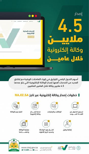 وزارة العدل: إصدار 4.5 ملايين وكالة إلكترونية خلال عامين