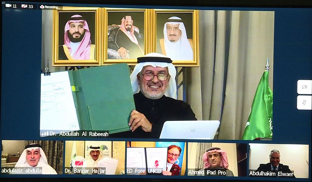 وأعرب معالي الدكتور الربيعة عن سعادته بالشراكة المميزة بين المركز والصندوق لدعم المحتاجين في شتى بقاع الأرض، خاصة في ظل ما يمر به العالم من ظروف إنسانية صعبة جراء تداعيات جائحة كورونا المستجد، التي أثرت بشكل سلبي على النساء والأطفال، وما استوجبه ذلك من أهمية تكثيف البرامج المخصصة لدعم تلك الفئات، مبيناً أن المملكة بقيادة خادم الحرمين الشريفين الملك سلمان بن عبدالعزيز آل سعود وسمو ولي عهده الأمين – حفظهما الله – لن تدخر جهداً لنجدة المتضررين والوقوف معهم ودعم العمل الإنساني في بلدان العالم ذات الاحتياج، مشيراً إلى أن الصندوق سيتمكن من خلال توقيع هذه المذكرة مع المركز إلى تقديم العون ودعم البرامج في مجالات الحماية والتعليم والرعاية الصحية والتغذية للأطفال والشباب الأكثر عرضة للخطر.