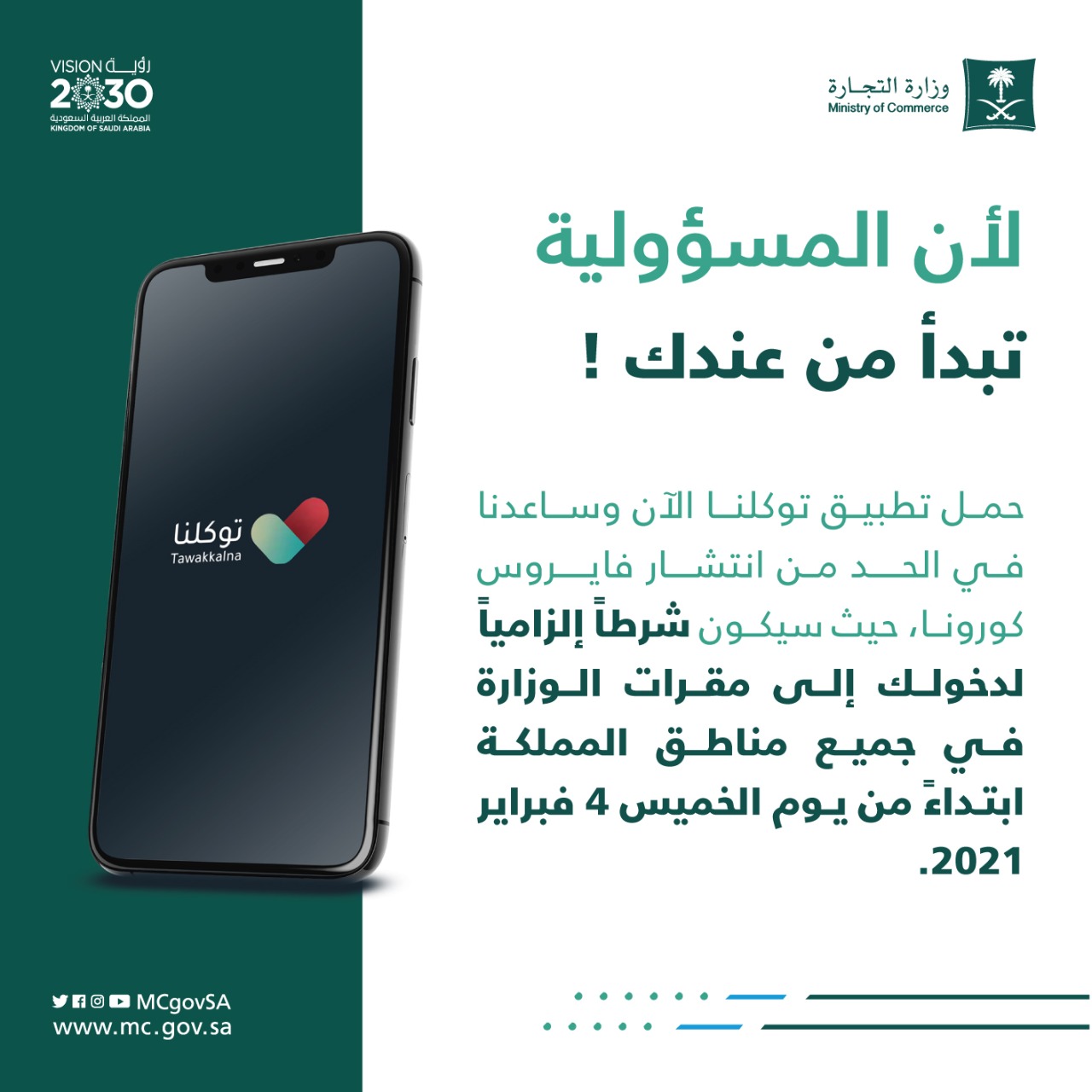 “التجارة”: تطبيق “توكلنا” إلزامي للموظفين والمراجعين