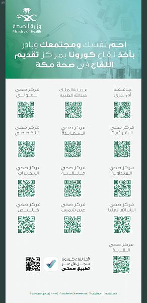 صحة مكة تدشن سبعة مراكز لتقديم لقاح فيروس كورونا بمكة المكرمة