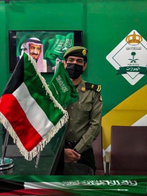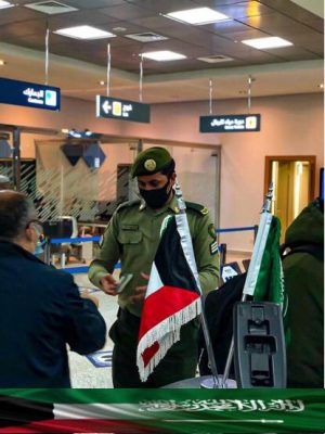 شاركت جوازات منطقة الجوف من خلال إداراتها بجوازات منفذ الحديثة وجوازات مطار الجوف، باحتفالات اليوم الوطني “60” لدولة الكويت الشقيقة والذي يصادف 25فبراير 2021م ،حيث احتفل منسوبي الجوازات مع المسافرين بالمطار من خلال توزيع الورود والهدايا ، وتوشحت صالات الجوازات بألوان العلم السعودي والكويتي ووضع لوحات ترحيبية للاحتفال بهذه المناسبة,كما شارك منسوبي جوازات منفذ الحديثة باحتفال اليوم الوطني الكويتي وذلك بتقديم باقات الورود والحلوى وإعلام البلدين على المسافرين .