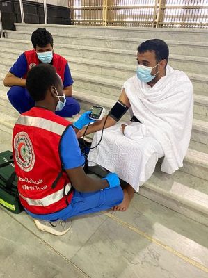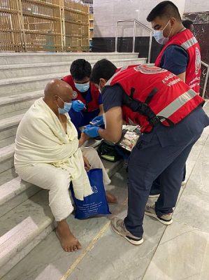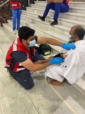 وبين المتحدث الرسمي لهيئة الهلال الأحمر السعودي بالعاصمة المقدسة عبدالعزيز بادومان أن مجموع الساعات التطوعية وصل إلى ١٢٩٠ساعة تطوعية ، لافتاً إلى أن المتطوعين باشروا ٩٥ بلاغاً اسعافياً في ساحات الحرم وفي أروقته وفي المسعى وفي مصليات النساء منها ٨٤ بلاغاً ، جرى التعامل معها في الموقع ، بينما نقلت ١١ حالة إلى مستوصفات الحرم المكي الشريف.
