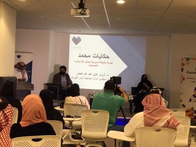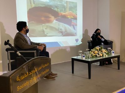انطلق اللقاء الحواري عن هذه الحكاية في مقر الجمعية بتمام الساعة ٦:٠٠ واستمر لقرابة الساعتين وكان مترجم بلغة الإشارة بتقديم الأستاذ محمد الذويب تحدثت فيه الدكتورة عن العديد من الجوانب التي استخدمتها في علاج ابنها محمد بمساعدة الأخصائي محمد حسني واستعرضوا طرق العلاج والتوصيات التي يجب استخدامها في مثل هذه الإصابات وأدق تفاصيل الحالة بجميع مراحلها الزمنية وكيف تم التغلب عليها في حكاية محمد التي لا تخلو من الإلهام .